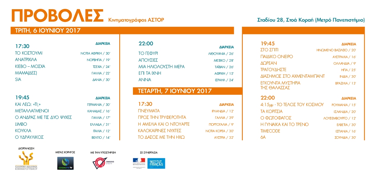 Οι ώρες προβολών είναι 17:30 – 00:00.
