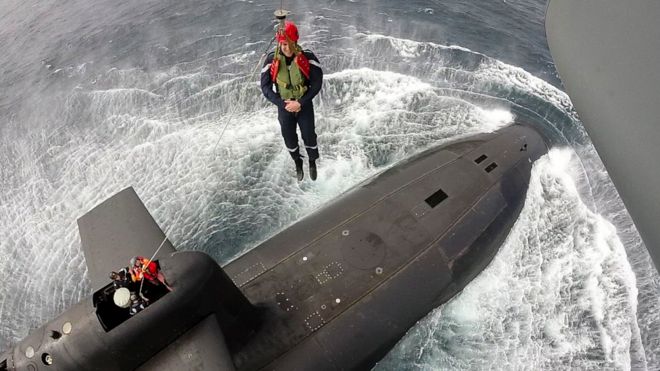 Όπως έγινε γνωστό ο πρόεδρος «κατέβηκε» με ελικόπτερο στο πυρηνικό υποβρύχιο, το οποίο βρίσκεται στον Ατλαντικό Ωκεανό, περίπου 300χλμ από τις γαλλικές ακτές.