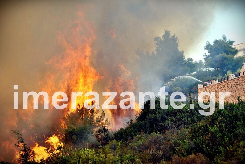 Zάκυνθος: Άνιση μάχη στα πύρινα μέτωπα-Κάηκαν σπίτια στην Αναφωνήτρια