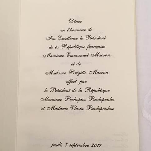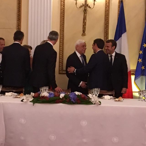 Επίσημο δείπνο προς τιμήν του προέδρου της Γαλλικής δημοκρατίας Εμανουέλ Μακρόν και της συζύγου του παρέθεσε ο Πρόεδρος της Δημοκρατίας, Προκόπης Παυλόπουλος στο Προεδρικό Μέγαρο.