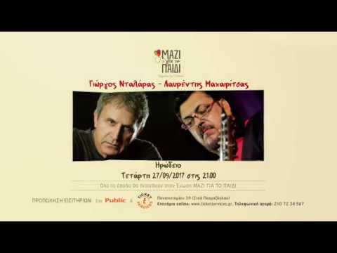 Για τους σκοπούς του «Μαζί για το Παιδί» θα τραγουδήσουν o Γιώργος Νταλάρας και o Λαυρέντης Μαχαιρίτσας στο Ηρώδειο στις 27 Σεπτεμβρίου. Η συνεργασία του Γιώργου Νταλάρα και του Λαυρέντη Μαχαιρίτσα είναι από μόνη της ένα σπουδαίο καλλιτεχνικό γεγονός, ειδικά τώρα, που γίνεται με σκοπό να στηρίξει τα παιδιά που αγκαλιάζει το « Μαζί για το Παιδί».