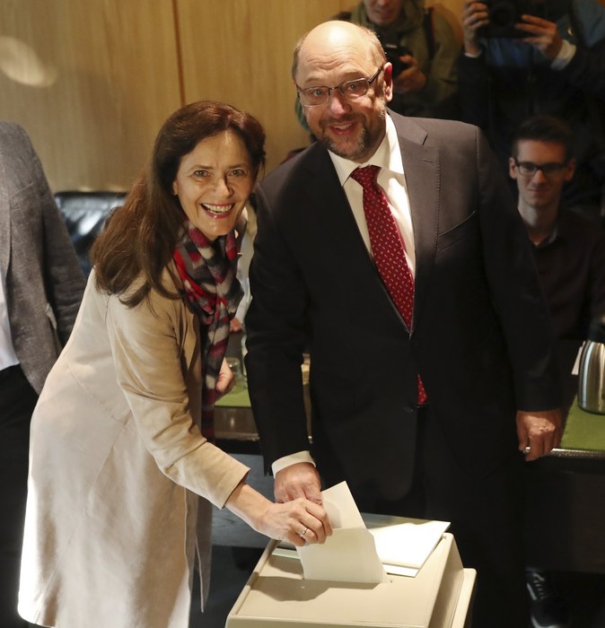 Νωρίς το μεσημέρι είχε ψηφίσει και ο υποψήφιος των σοσιαλδημοκρατών (SPD) Μάρτιν Σουλτς στην ιδιαίτερη πατρίδα του, κοντά στο Άαχεν, συνοδευόμενος και αυτός από τη σύζυγό του. «Αυτή ήταν η καθοριστική ψήφος» δήλωσε με χιουμοριστική διάθεση ο Σουλτς, αποχωρώντας από το εκλογικό κέντρο.