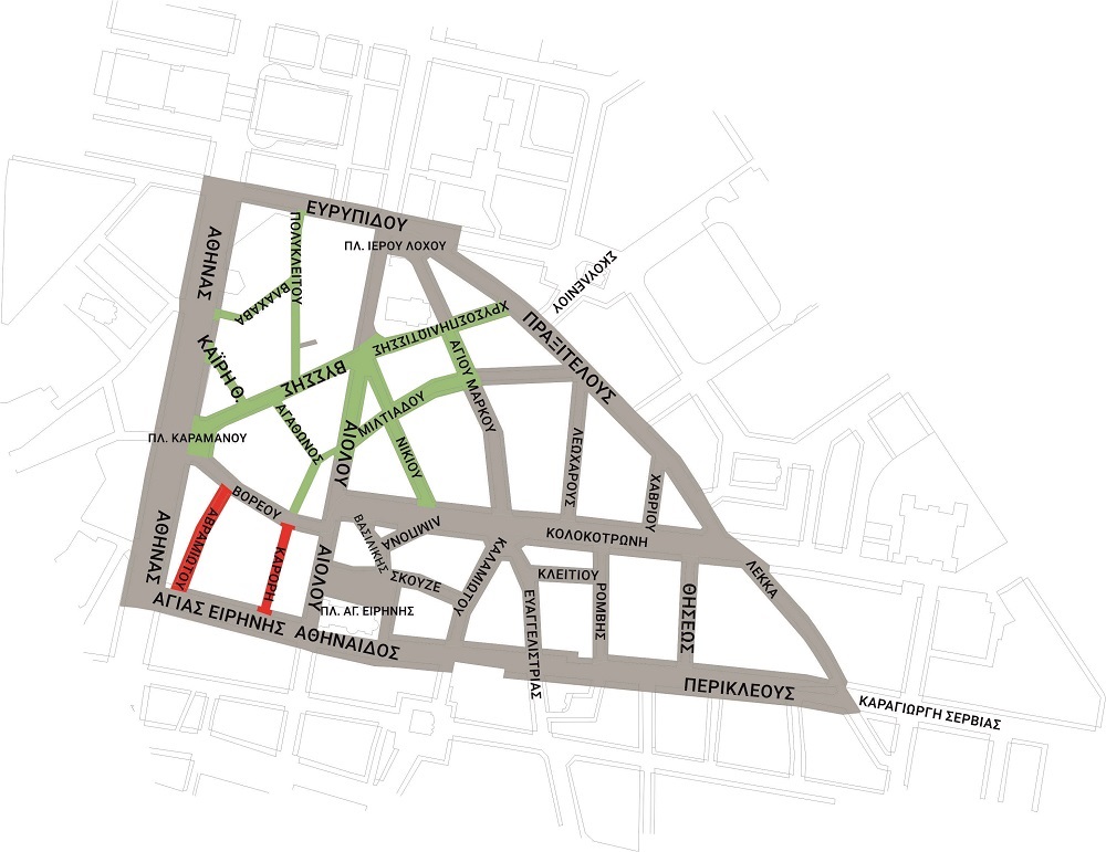 Σε δρόμους αποκλειστικά για πεζούς μετατρέπονται από αύριο οι οδοί Αβραμιώτου και Καρόρη, στο πλαίσιο του μεγάλου έργου του Δήμου Αθηναίων για την αποκατάσταση του Εμπορικού Τριγώνου της Αθήνας.
