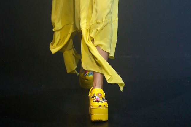 «Αντί να κάνει τα μοντέλα να υποφέρουν βαδίζοντας σε ψηλοτάκουνα πέδιλα ο οίκος Balenciaga επέλεξε χοντροκομμένα ζεύγη Crocs. Η γαλλική αυτοκρατορία της μόδας ένωσε τις δυνάμεις με την εταιρεία παραγωγής υποδημάτων για μία περιορισμένης έκδοσης συλλογής που αναβαθμίζει το κλασικό Clog σε 10ποντη πλατφόρμα με την ονομασία «Foam»».