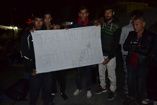 Συνέχεια στις χθεσινοβραδινές τους κινητοποιήσεις δίνουν ομάδα αφγανών μεταναστών, διεκδικώντας ασφαλή διαμονή στον καταυλισμό της Μόριας αλλά και ισότιμη αντιμετώπιση των αιτημάτων ασύλου που έχουν υποβάλλει με αυτά των Σύρων.
