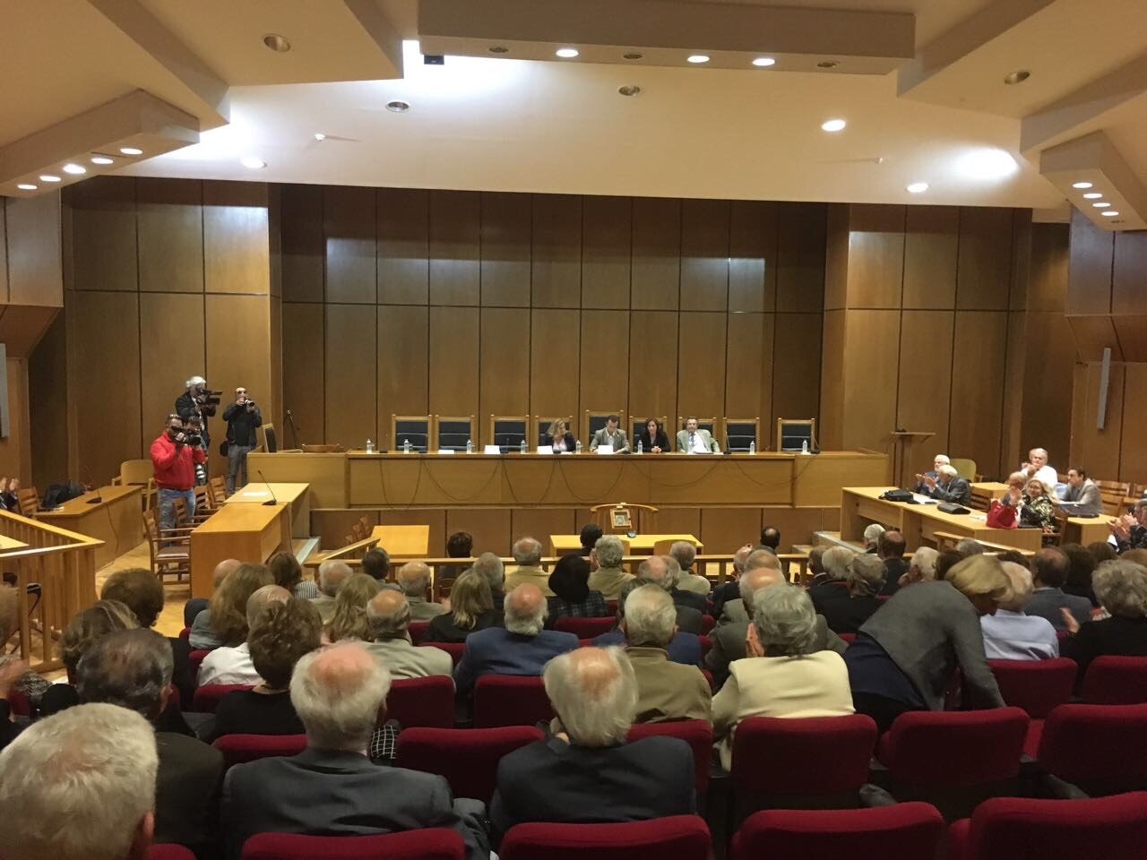 Ο κ. Σεβαστίδης, παίρνοντας πρώτος τον λόγο, υπογράμμισε ότι οι περικοπές, συνολικά, από την εφαρμογή των μνημονίων μέχρι σήμερα ανερχονται σε ποσοστό 74%. Μίλησε για την «απόγνωση στην οποία έχουν περιέλθει χιλιάδες συνταξιούχοι συνάδελφοι που είδαν σε έναν μήνα τη σύνταξή τους να μειώνεται ακόμη περισσότερο και να φθάνει για τον πρόεδρο του Αρείου Πάγου στα 1.450 ευρώ. Για την οποία, αν συνυπολογιστεί η επιστροφή σε δόσεις των διαφορών συντάξεων, από την 1η Ιουνίου 2016 εως τις 30 Σεπτεμβρίου 2017, το ύψος της αγγίζει τα 1.180 ευρώ».