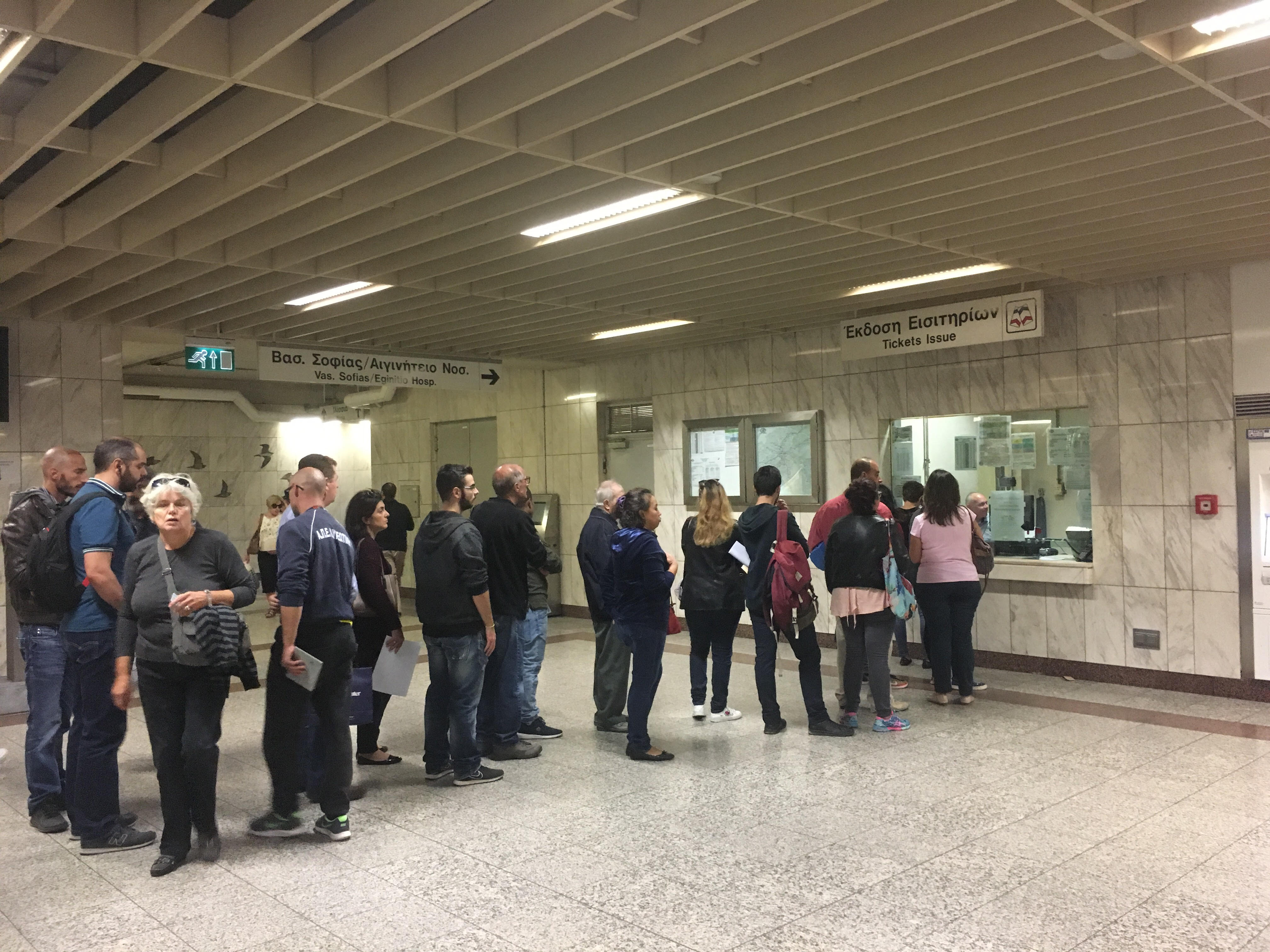 Αναμονή που ξεπερνά και την μια ώρα στους κεντρικούς σταθμούς μετρό της Αθήνας για την έκδοση του νέου ηλεκτρονικού εισιτηρίου. Πολίτες περιμένουν στις ουρές για να υποβάλουν την αίτηση τους για την «Athena Card» η οποία θα τεθεί σε εφαρμογή από την 1η Νοεμβρίου.