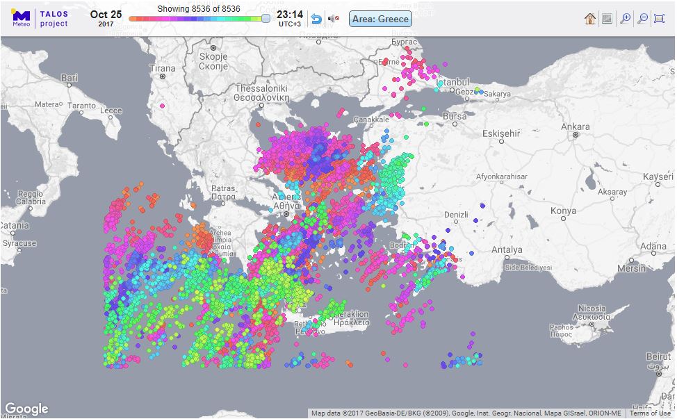 Όπως μπορείτε να δείτε στον πίνακα του meteo.gr από το σύστημα ΖΕΥΣ του Εθνικού Αστεροσκοπείου, την Τετάρτη καταγράφηκαν περισσότεροι από 8.000 κεραυνοί.
