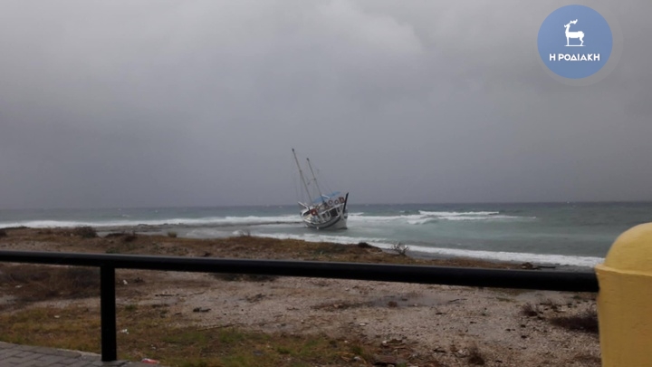 Καράβι βγήκε στη στεριά λόγω κακοκαιρίας στη Ρόδο [Εικόνες]