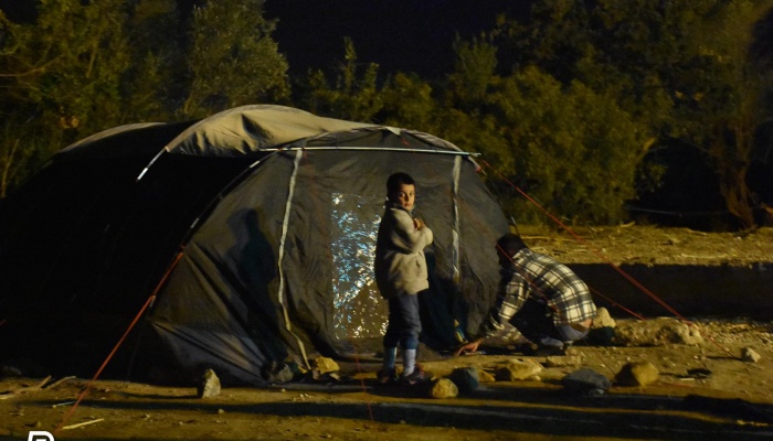 Παρά τις προειδοποιήσεις της Εθνικής Μετεωρολογικής Υπηρεσίας οι περίπου 400 πρόσφυγες που δεν χωρούν στο hotspot και μένουν προσωρινά σε χωράφια της περιοχής αναγκάστηκαν να βρουν μόνοι τους λύση για να αποφύγουν τα λασπόνερα.