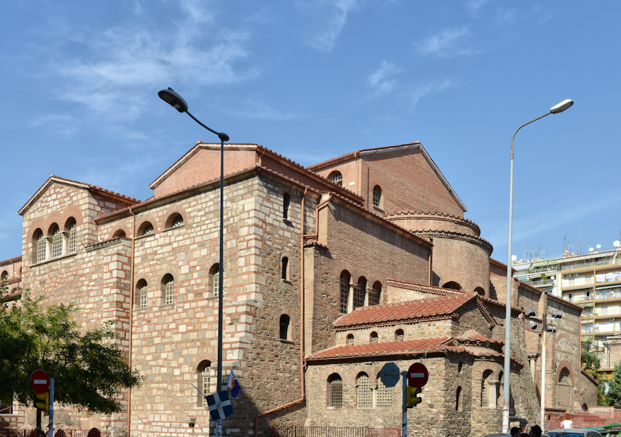 Ο μεγαλοπρεπής ναός του πολιούχου και προστάτη της Θεσσαλονίκης, ένα από τα λαμπρότερα χριστιανικά αρχιτεκτονικά μνημεία, είναι μια πεντάκλιτη βασιλική με αμφικλινή στέγη, νάρθηκα, εγκάρσιο κλίτος και υπερώα επάνω από όλα τα κλίτη και το νάρθηκα.