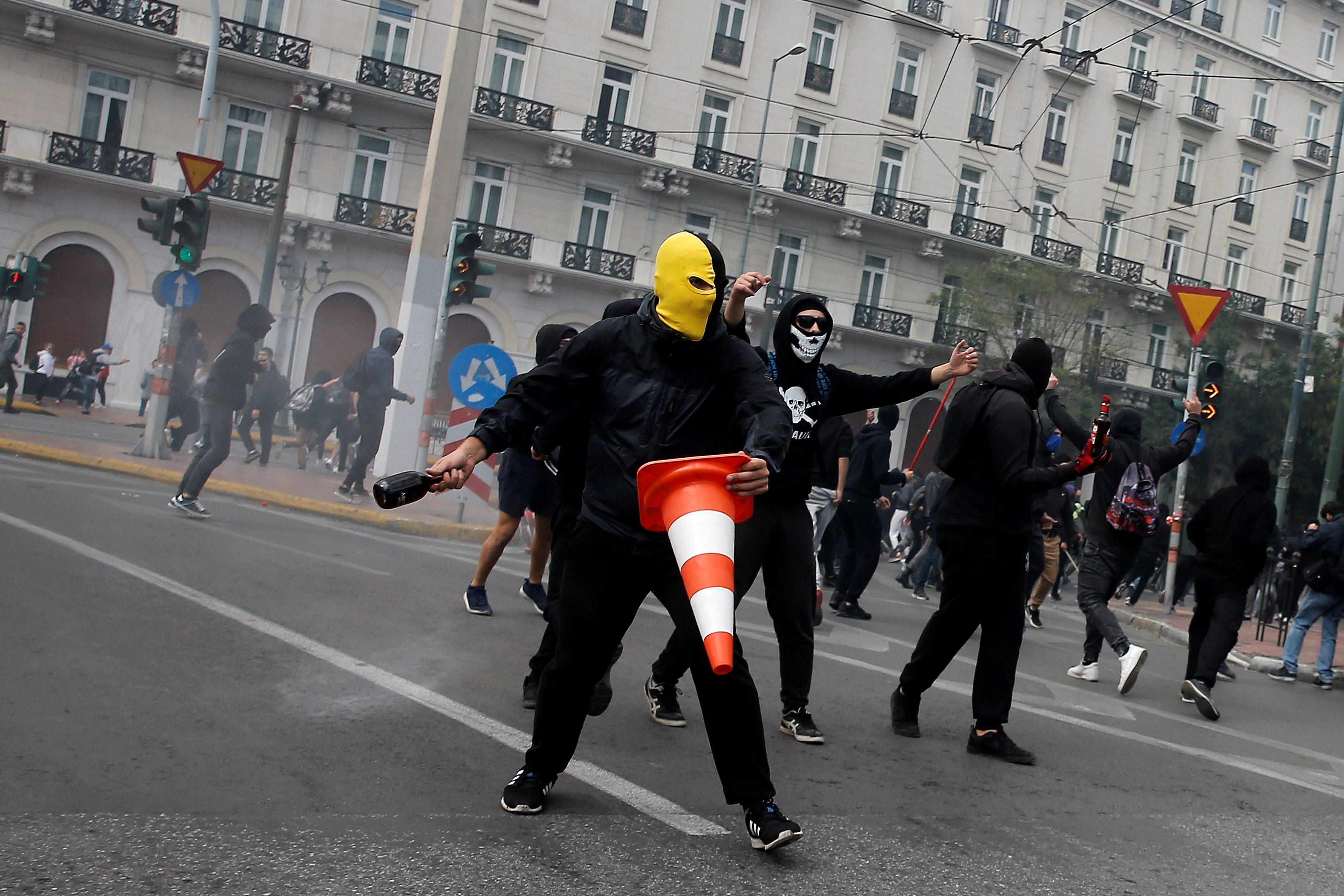 Οι αναρχικοί έκαναν ρίψη καπνογόνων, φωτοβολίδων και μολότωφ προς τις αστυνομικές δυνάμεις, οι οποίες «απάντησαν» κάνοντας χρήση χημικών.