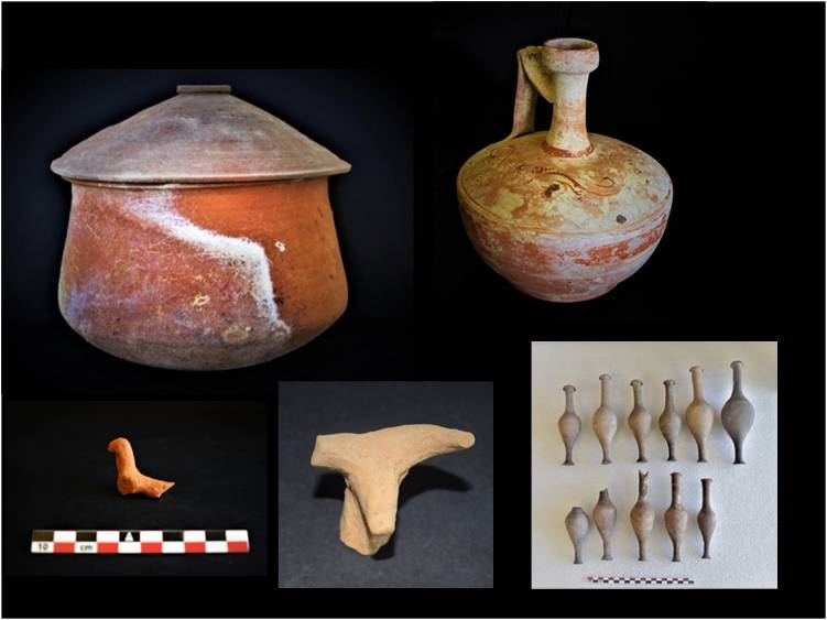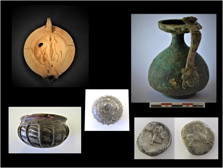 Στα κτερίσματα των υπόλοιπων τάφων συγκαταλέγονται κυρίως μυροδοχεία, οστέινες περόνες, μεγάλος αριθμός από οστέινα κοχλιάρια, κέλυφος αβγού, τμήμα ξύλου, λύχνοι, μικκύλα αγγεία, λάγηνοι, σκύφοι, σιδερένιες στλεγγίδες, χρυσές δανάκες και χάλκινα νομίσματα, καθώς και ανάγλυφο χρυσό έλασμα. Μεταξύ των ελληνιστικών ταφών εντοπίστηκε και ταφή του 1ου αι. μ.Χ. μέσα σε σαρκοφάγο ελληνιστικών χρόνων, η οποία συμπληρώθηκε στη δυτική πλευρά της με μικρή προσθήκη κατά τους ρωμαϊκούς χρόνους. Η εν λόγω ταφή απέδωσε ακέραιη περίτεχνη γυάλινη καλυκωτή φιάλη, χάλκινη οινοχόη, σιδερένια στλεγγίδα με περίτεχνη λαβή, βολβόσχημα μυροδοχεία, λάγηνο, μικκύλα αγγεία, χάλκινο νόμισμα και χάλκινους ήλους με ημισφαιρική κεφαλή από καττύματα υποδημάτων.