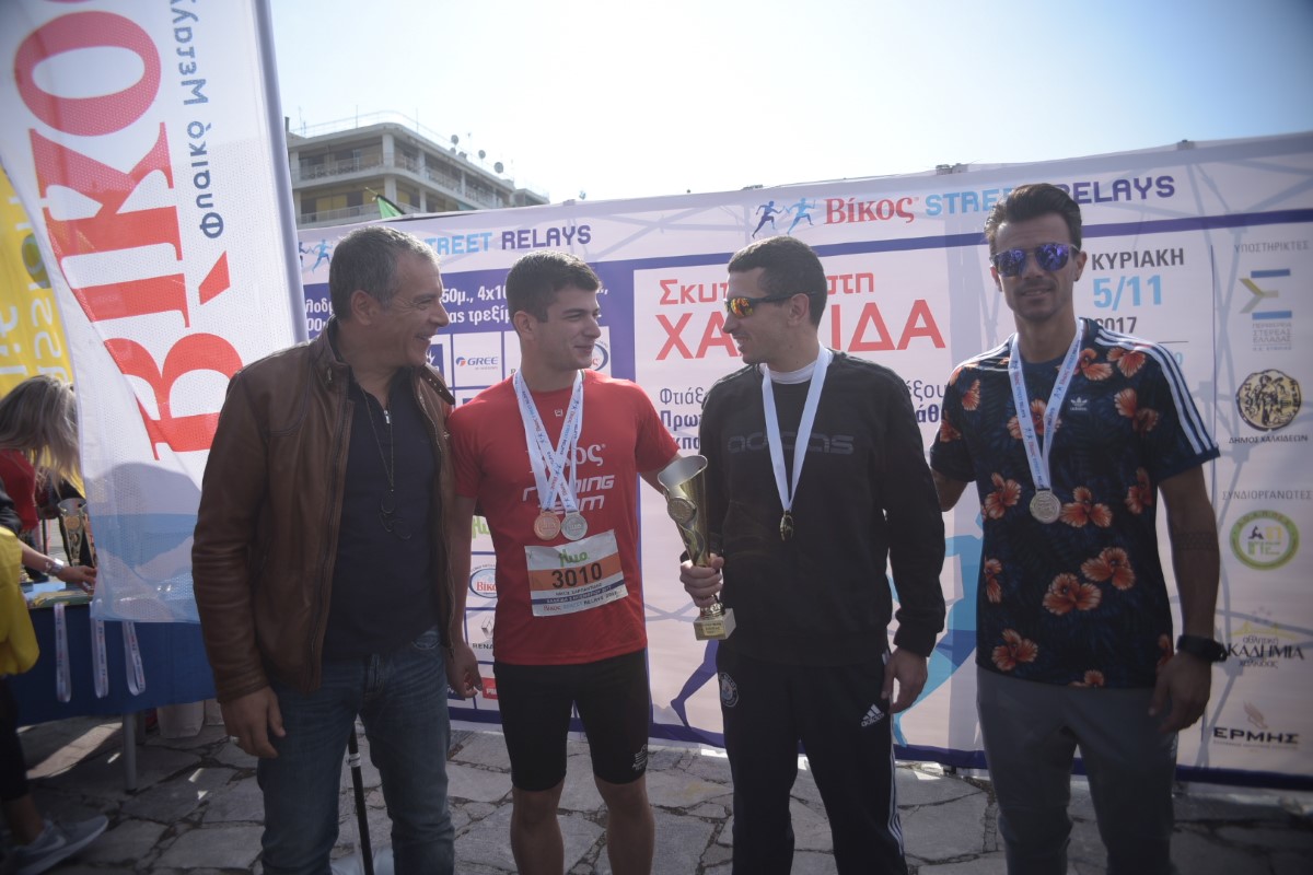 Ο Σταύρος Θεοδωράκης είχε επίσης την ευκαιρία να παρακολουθήσει τους αγώνες δρόμου, που διεξήχθησαν στο κέντρο της πόλης, και να δώσει μετάλλια στους νικητές της κατηγορίας ανδρών.