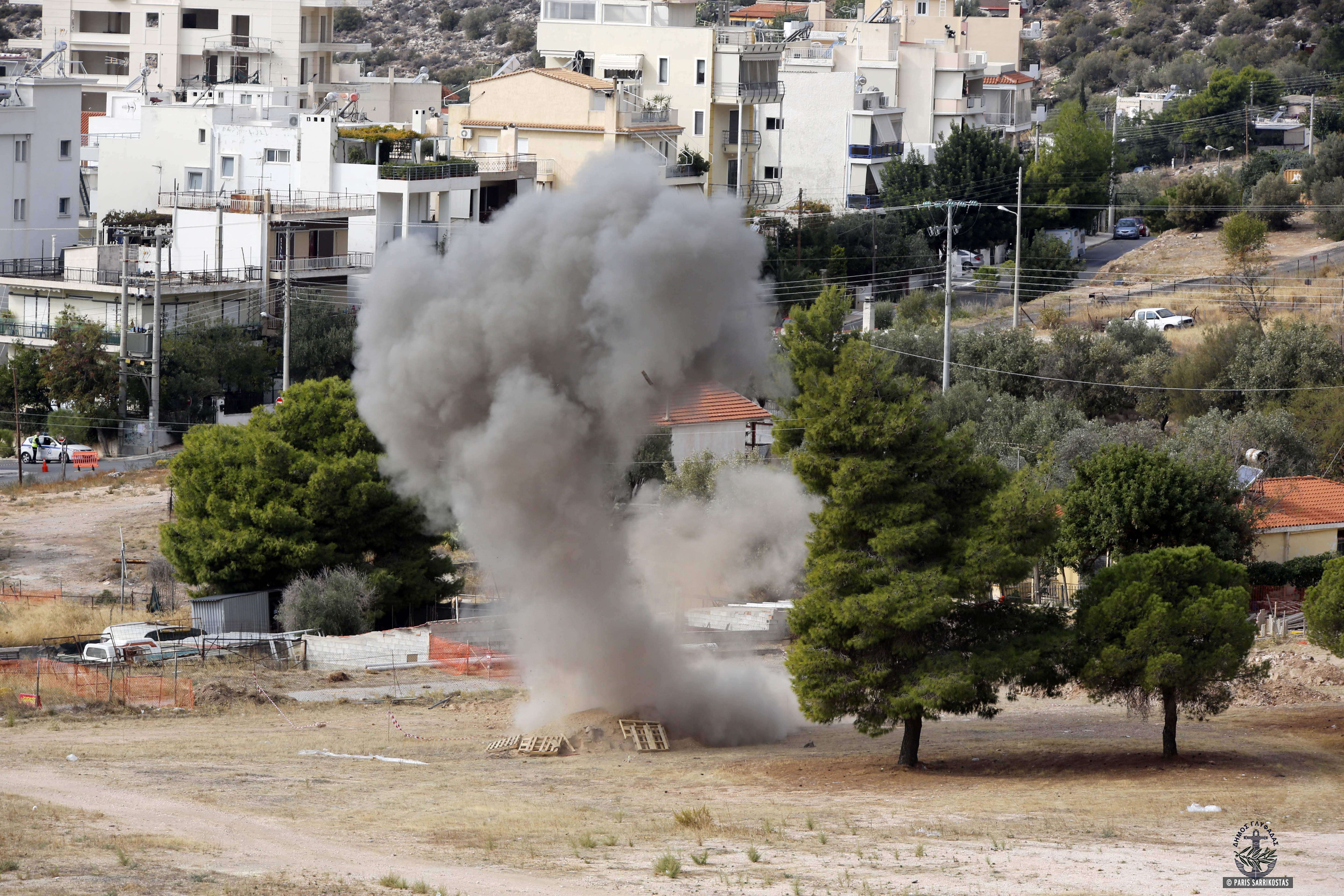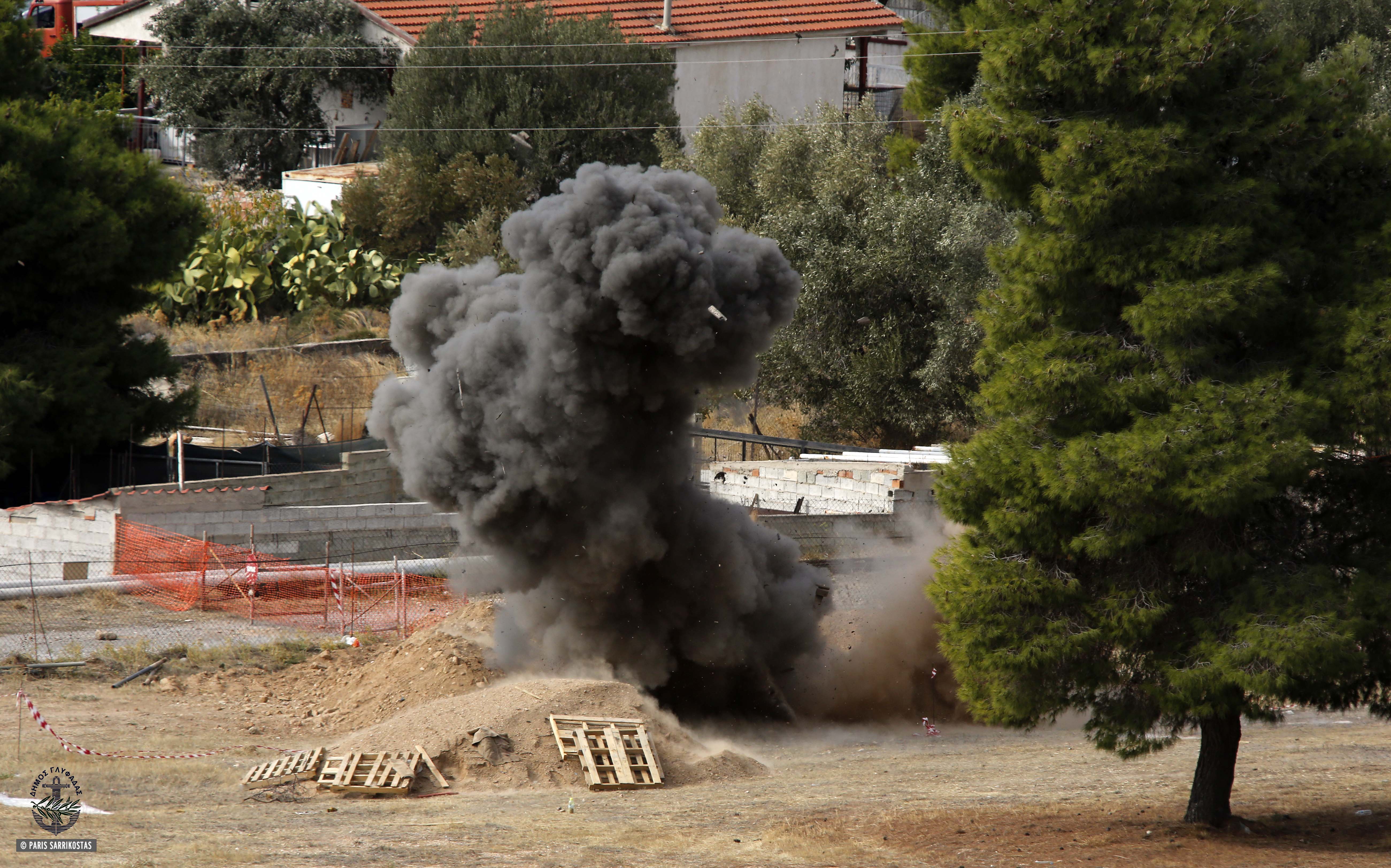 Με επιτυχία και απόλυτη ασφάλεια πραγματοποιήθηκε σήμερα το πρωί ελεγχόμενη έκρηξη σε βλήμα πυροβολικού γερμανικής προέλευσης, του Β’ Παγκοσμίου Πολέμου, που ανακαλύφθηκε μετά από εκσκαφή για αντιπλημμυρικά έργα στο όριο της περίφραξης του στρατοπέδου της Πολεμικής Αεροπορίας-ΕΤΗΜ (Εργοστάσιο Τηλεπικοινωνιακών και Ηλεκτρονικών Μέσων) στην Άνω Γλυφάδα.