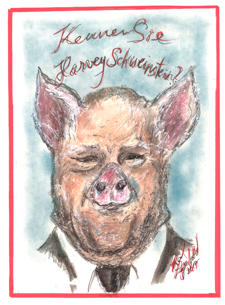 Με μορφή …γουρουνιού παρουσιάζει τον κινηματογραφικό παραγωγό του Χόλιγουντ Χάρβεϊ Γουάινσταϊν ο γνωστός σχεδιαστής μόδας Καρλ Λάγκερφελντ στο τελευταίο του σκίτσο- «Karlikature» στο ένθετο μηνιαίο περιοδικό της εφημερίδας Frankfurter Allgemeine Zeitung.