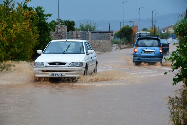 Η «Ευρυδίκη» έχει προκαλέσει προβλήματα σε πολλά σημαία του οδικού δικτύου στην Αργολίδα με πλημμυρισμένους δρόμους από την καταρρακτώδη βροχή.