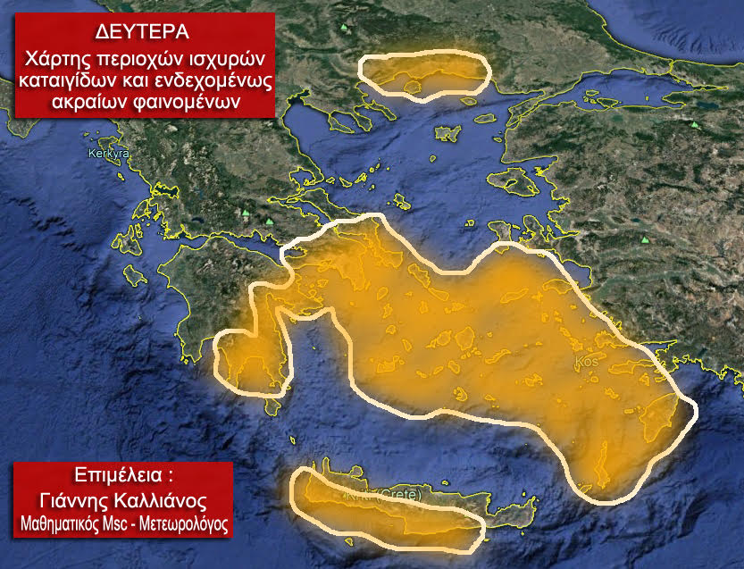 επικράτειας. Αναμένονται πολύ ισχυρές κατά τόπους καταιγίδες και σε