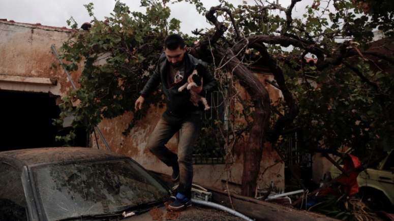 Μάνδρα: Κάτοικος έσωσε σκύλο και γάτα από τη φονική πλημμύρα