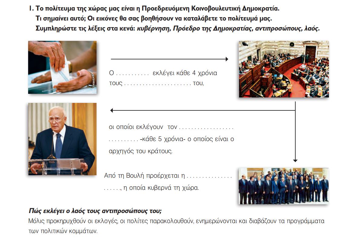 1. Σελ. 16: Το ΥΠΑΙΘ να αντικατασταθεί με το ΥΠΠΕΘ 2. Σελ. 17: Γραμμή 7 από το τέλος. Το ΥΠΑΙΘ να αντικατασταθεί με το ΥΠΠΕΘ και να διορθωθεί σε Υπουργείο Παιδείας Έρευνας και Θρησκευμάτων 3. Σελ 26: Γραμμή 3 ως 5 από το τέλος. «, , ο μουσουλμανισμός ο ιουδαϊσμός, ο βουδισμόςκαι ο ινδουισμός» να διορθωθούν με κεφαλαίο το πρώτο γράμμα 4. Σελ. 30: Γραμμή 4 από το τέλος. «από 52 Περιφερειακές Ενότητες (πρώην Νομούς)» να αντικατασταθεί με «από 74 Περιφερειακές Ενότητες» 5. Σελ. 33: Γραμμή 13 από το τέλος «Οι δημοτικές εκλογές γίνονται κάθε 4 χρόνια…» να αντικατασταθεί με «δημοτικές εκλογές γίνονται κάθε 5 χρόνια…» 6. Σελ. 37: Αντικατάσταση της εικόνας λογαριασμού ΔΕΗ με νεότερη, αν είναι εφικτό. 7. Σελ. 42: ΠΡΟΣΟΧΗ: Ο χάρτης της Ελλάδος δεν περιλαμβάνει το Καστελόριζο, τη Γαύδο κτλ. Να αντικατασταθεί με πλήρη και πιο ευκρινή χάρτη της Ελλάδος. 8. Σελ. 49: Πλαίσιο κάτω αριστερά στη σελίδα. Τα ονόματα των υπουργείων χρειάζονται επικαιροποίηση. Το Υπουργείο Ανάπτυξης Ανταγωνιστικότητας και Ναυτιλίας να γίνει Υπουργείο Οικονομίας και Ανάπτυξης. ΤοΥπουργείο Υποδομών, Μεταφορών και Δικτύων να γίνει Υπουργείο Υποδομών και Μεταφορών. Το Υπουργείο Πολιτισμού και Τουρισμού να γίνει Υπουργείο Πολιτισμού και Αθλητισμού. 9. Σελ. 54: Γραμμή 13 από το τέλος. «Οι πολίτες ηλικίας 18 ετών και άνω…» να αντικατασταθεί με «Οι πολίτες ηλικίας 17 ετών και άνω…» 10. Σελ. 60: Πρώτο πλαίσιο σελίδας. Τα τηλέφωνα του Υπουργείου Προστασίας του Πολίτη και της ΔΕΗ νααντικατασταθούν με Υπουργείο Προστασίας του Πολίτη – 213-1520000 και ΔΕΗ – 11770