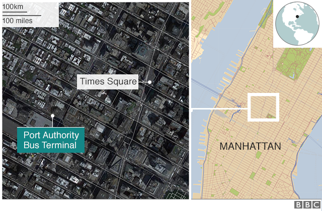 Η έκρηξη σημειώθηκε ξημερώματα Δευτέρας (τοπική ώρα) στον τερματικό σταθμό λεωφορείων Port Authority, κοντά στην Times Square.