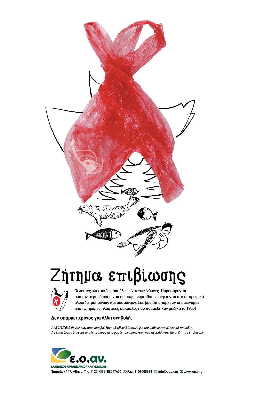Παράλληλα, τονίζει πως ήδη ξεκίνησε καμπάνια ενημέρωσης με τίτλο «Ζήτημα επιβίωσης». Η πρώτη δράση της καμπάνιας περιλαμβάνει προβολή της επικοινωνιακής αφίσας από τις 9 έως τις 22 Δεκεμβρίου 2017 σε στάσεις λεωφορείων στο κέντρο της Αθήνας και της Περιφέρειας Αττικής.