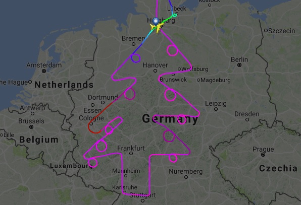 Ένα ιδιαίτερο δώρο Χριστουγέννων έκανε στους συναδέλφους του ένας γερμανός πιλότος. Κατά τη δοκιμαστική πτήση του Airbus A380, χάραξε πορεία με την οποία σχεδίασε το περίγραμμα ενός τεράστιου χριστουγεννιάτικου δέντρου.