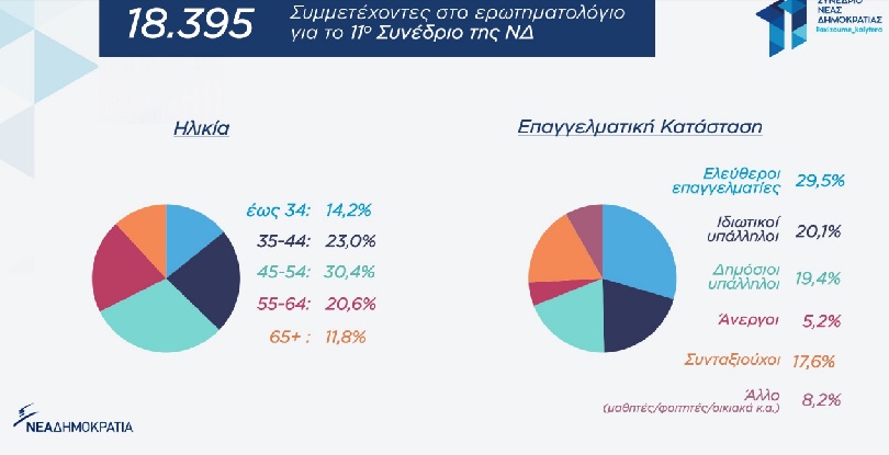 Συνολικά, 18.395 πολίτες απάντησαν στο ερωτηματολόγιο του Συνεδρίου της Νέας Δημοκρατίας, σχετικά με τα αίτια της κρίσης και τις πολιτικές προτεραιότητες της Νέας Δημοκρατίας.