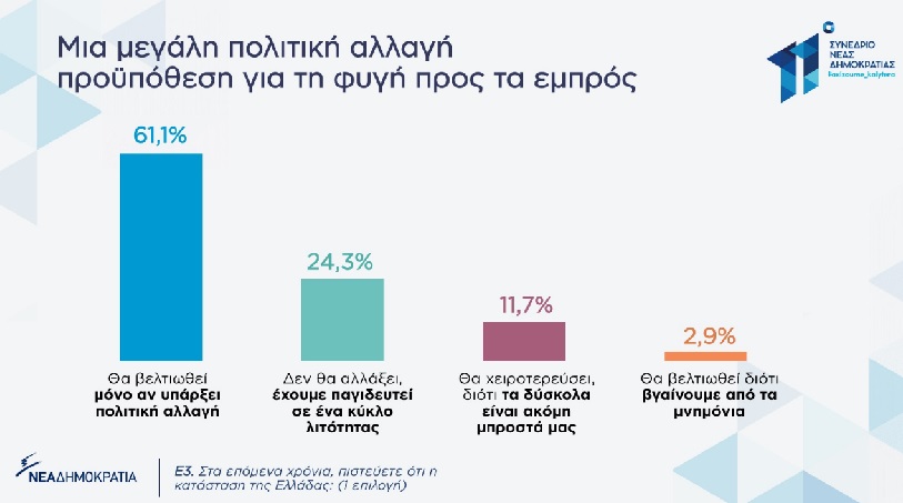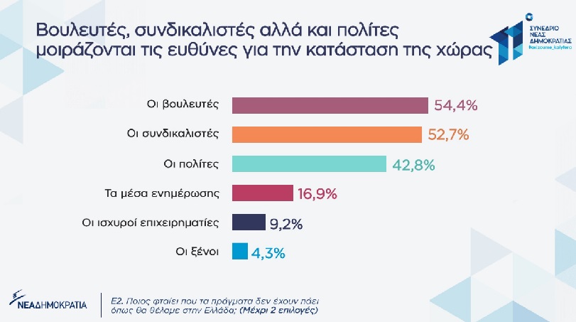 Πρόκειται για τις απόψεις των πολιτών όσον αφορά στα αίτια της κρίσης και τις πολιτικές προτεραιότητες που πρέπει να έχει η Νέα Δημοκρατία την επόμενη ημέρα.