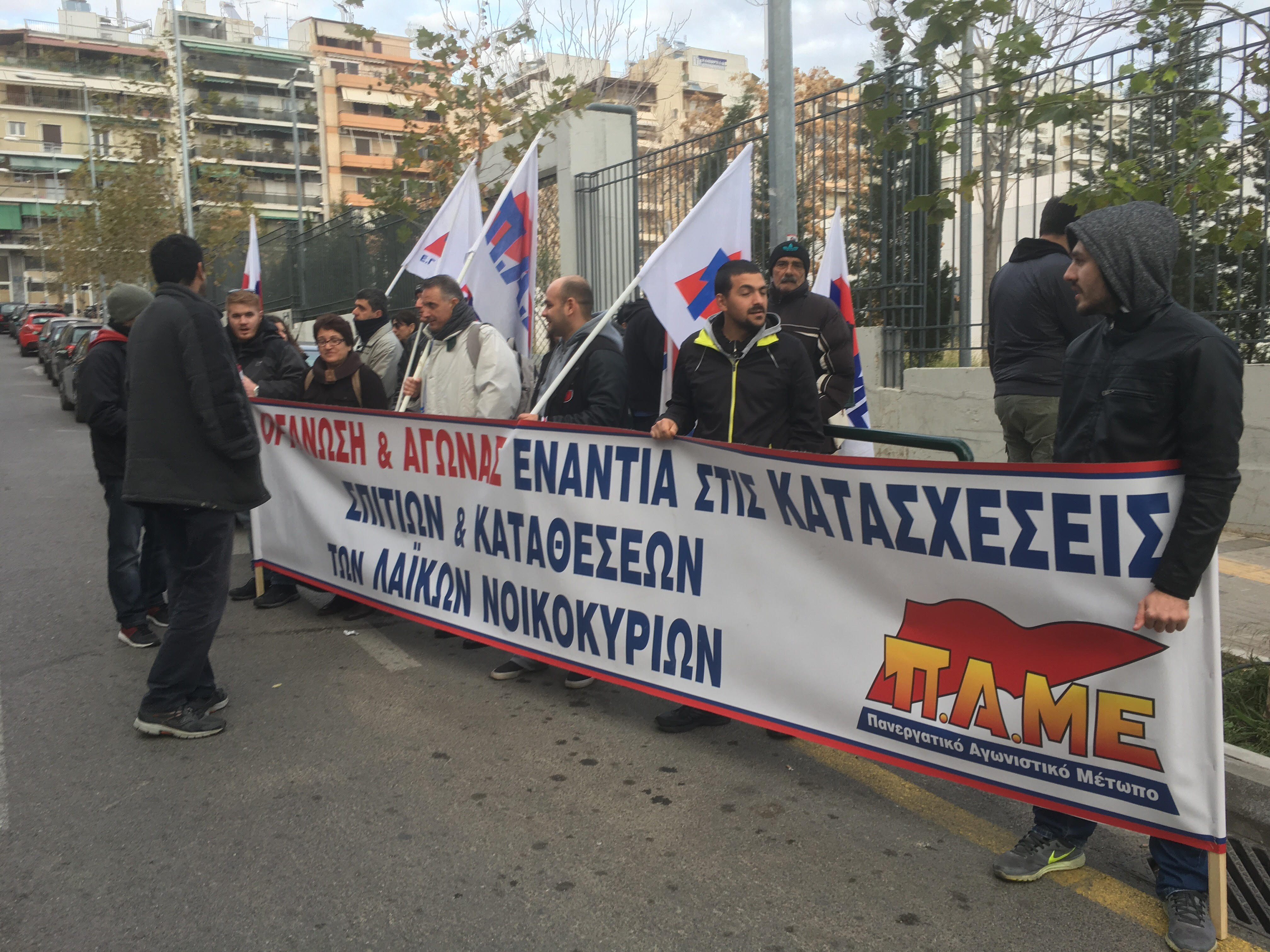 Αυτή τη φορά ο κόσμος που συγκεντρώθηκε έξω από το Ειρηνοδικείο Αθηνών ήταν αρκετά περισσότερος από τις προηγούμενες, ενώ συμμετείχε στην κινητοποίηση και το ΠΑΜΕ.