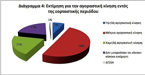 Τέλος ένα στους τέσσερις επιχειρηματίες δεν διέκρινε κάποια διαφοροποίηση όσον αφορά την αγοραστική κίνησης κατά τη διάρκεια της εορταστικής περιόδου.