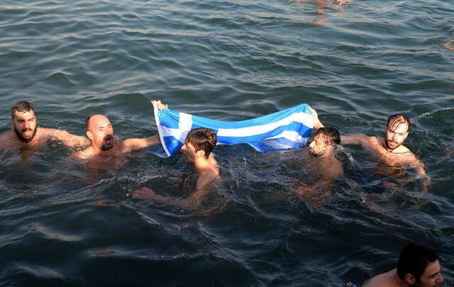 Αίσθηση προκάλεσε ομάδα πιστών που έβαλαν στα νερά του Κεράτειου ελληνική σημαία.