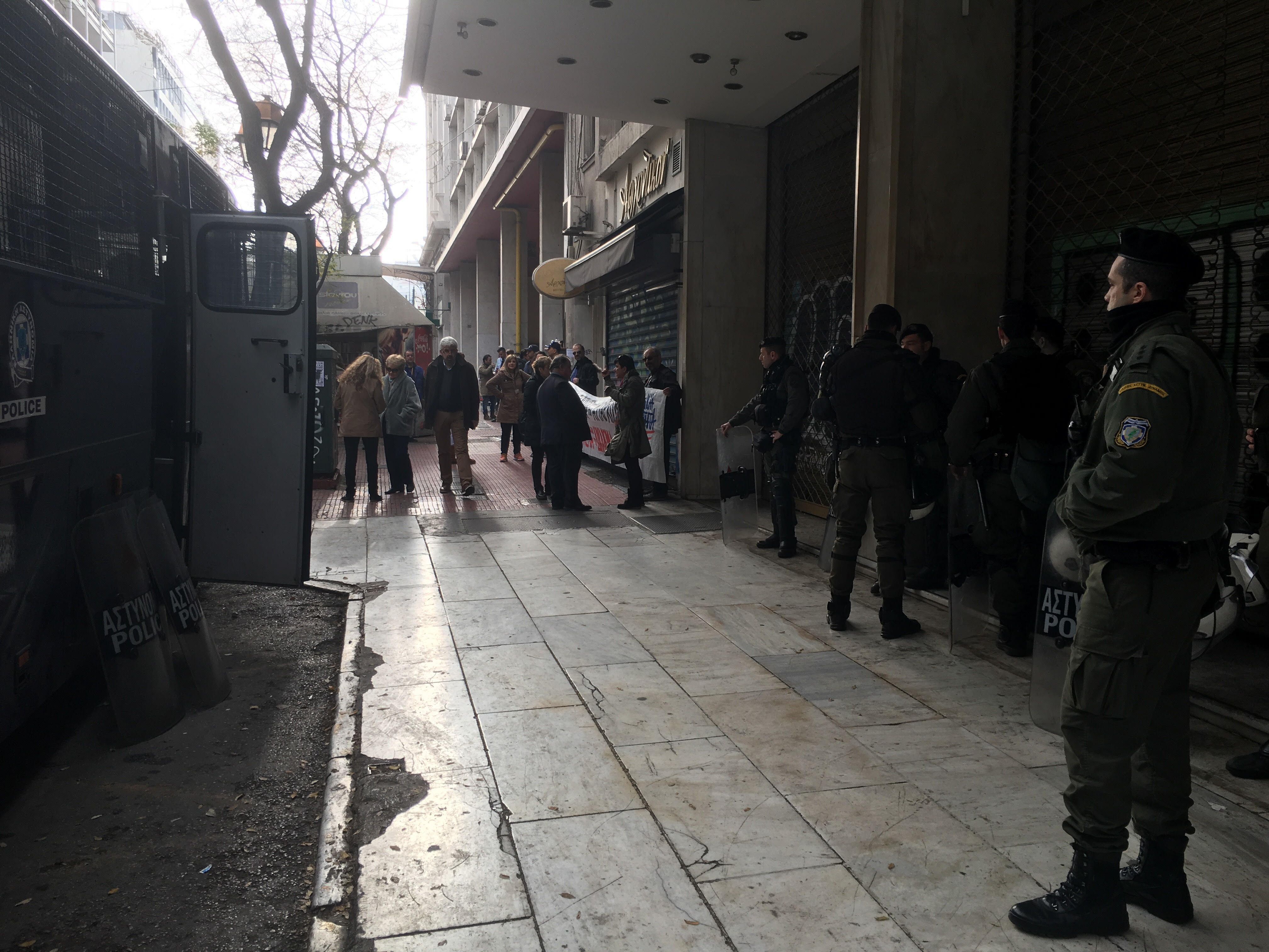 Για την αποφυγή επεισοδίων η ΕΛ.ΑΣ. έχει επιστρατεύσει 30 περιπου αστυνομικούς για την φύλαξη του κτιρίου.