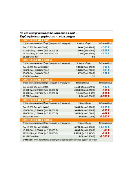 Οι κερδισμένοι και χαμένοι των οικογενειακών επιδομάτων