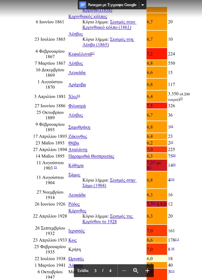 Δείτε παρακάτω τον πίνακα με τους ισχυρότερους σεισμούς της Ελλάδας όπως