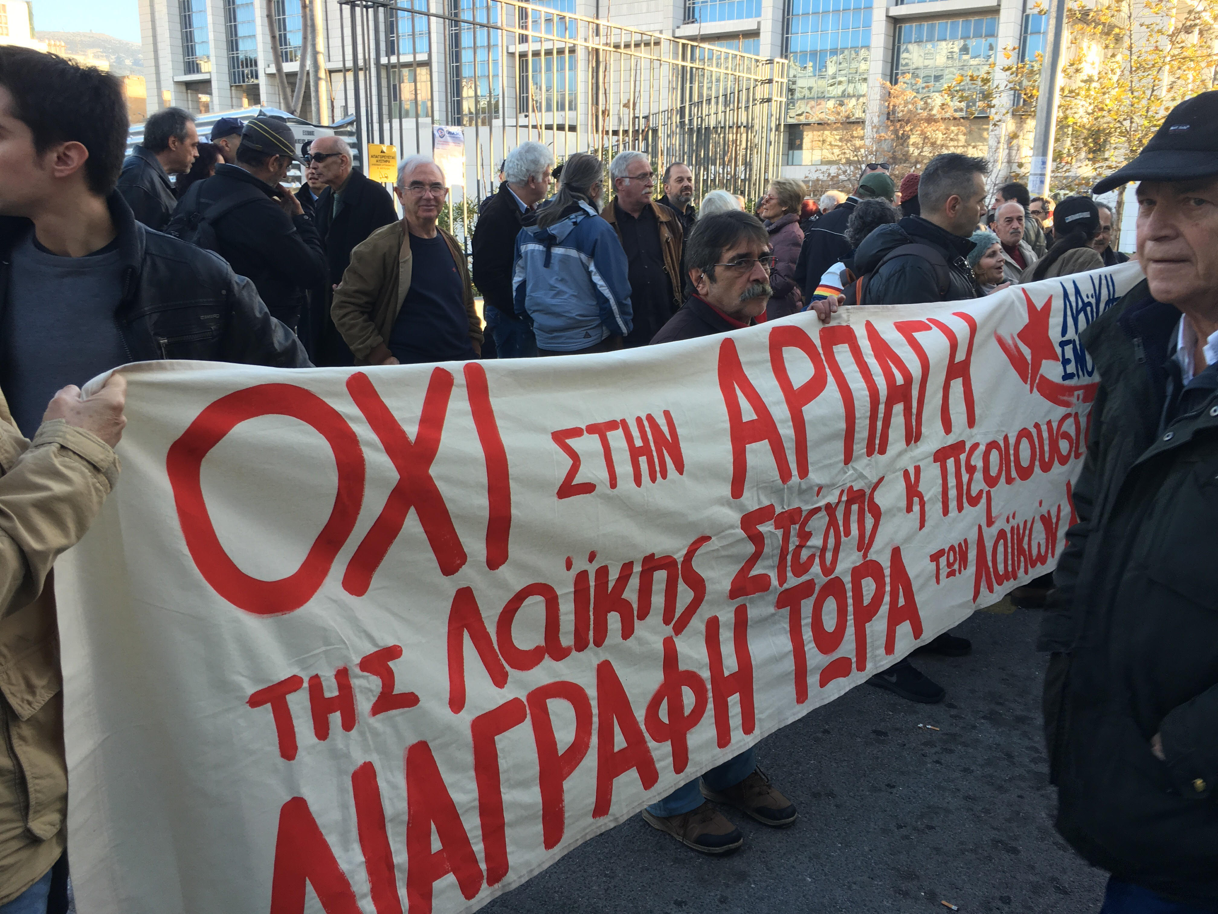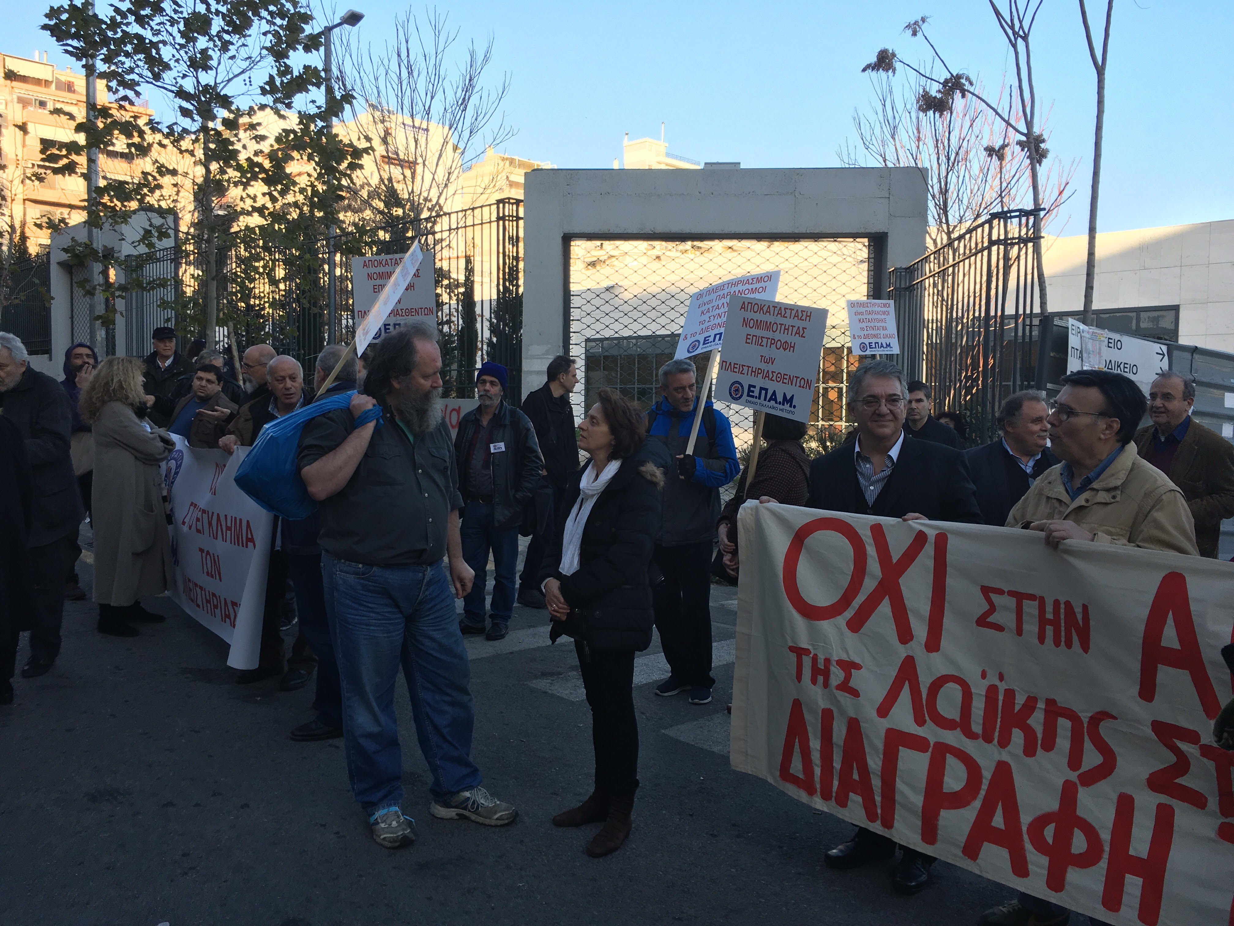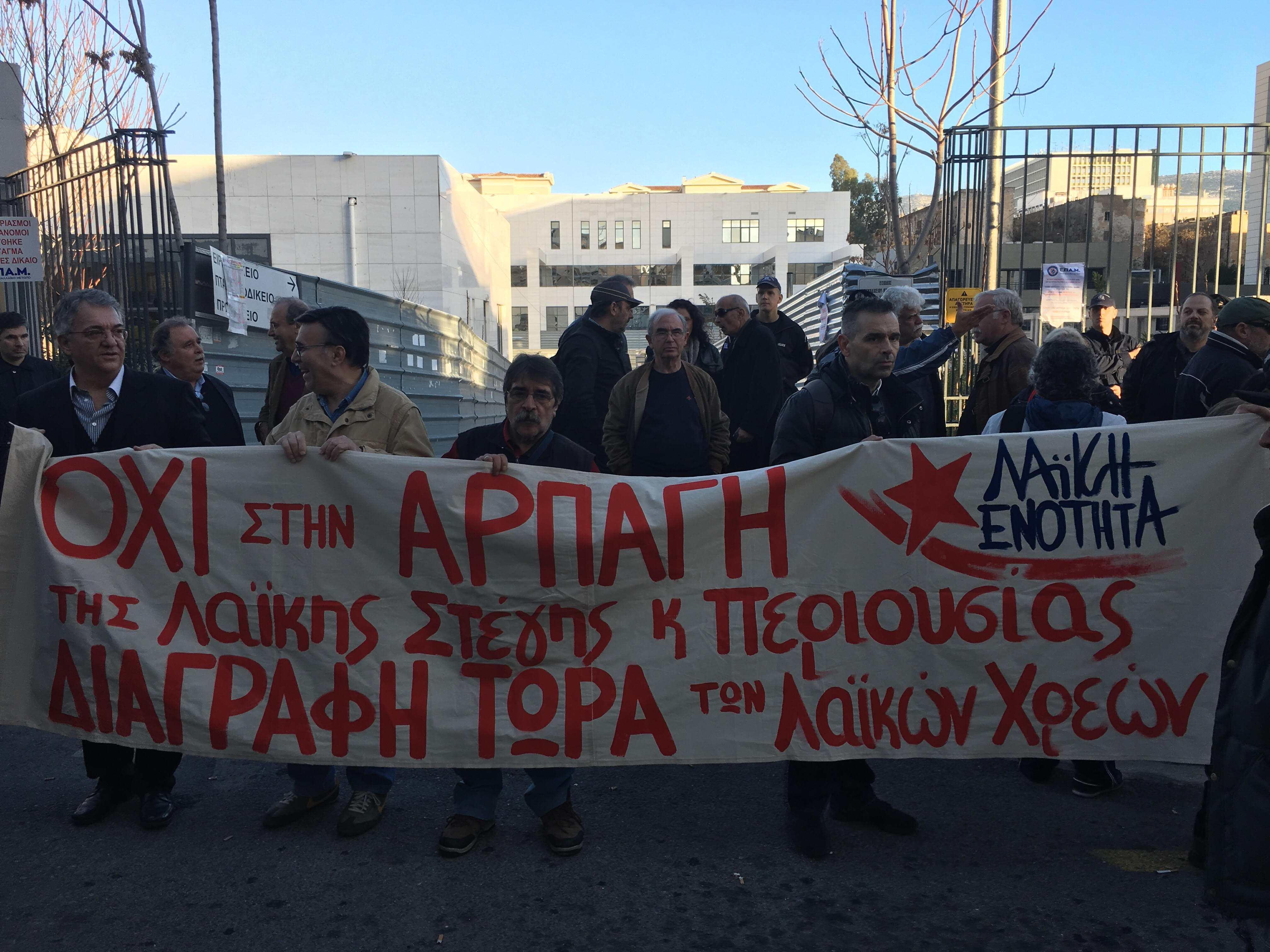 Συνεχίζουν την διαμαρτυρία τους οργανώσεις κατά των πλειστηριασμών έξω από το Ειρηνοδικείο Αθηνών.
