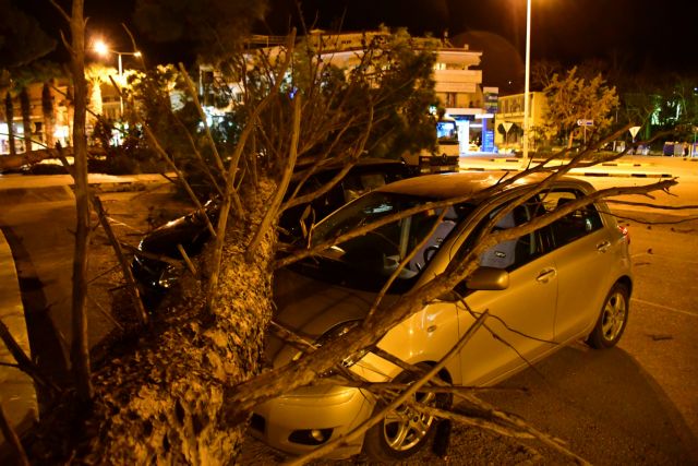 Θυελλώδεις άνεμοι που έπνεαν στο Ναύπλιο από τα ξημερώματα είχαν σαν αποτέλεσμα να καταπλακωθούν από πτώσεις δέντρων αυτοκίνητα μέσα στην πόλη.