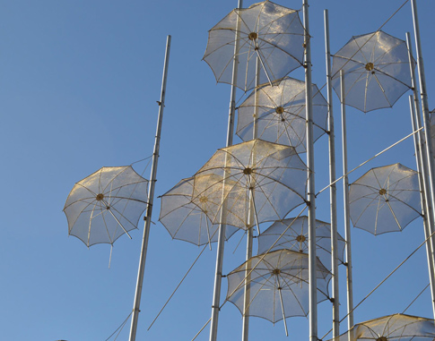 Ζημιές στο γλυπτό «Ομπρέλες» του Γιώργου Ζογγολόπουλου, που βρίσκεται τοποθετημένο στη Νέα Παραλία της Θεσσαλονίκης, προκάλεσαν οι θυελλώδεις άνεμοι που πνέουν στην πόλη. Λόγω των ισχυρών ανέμων «λάσκαρε» μία από τις συνολικά 40 ομπρέλες, ενώ ζημιές προκλήθηκαν στο μεταλλικό πλαίσιο που τις στηρίζει.