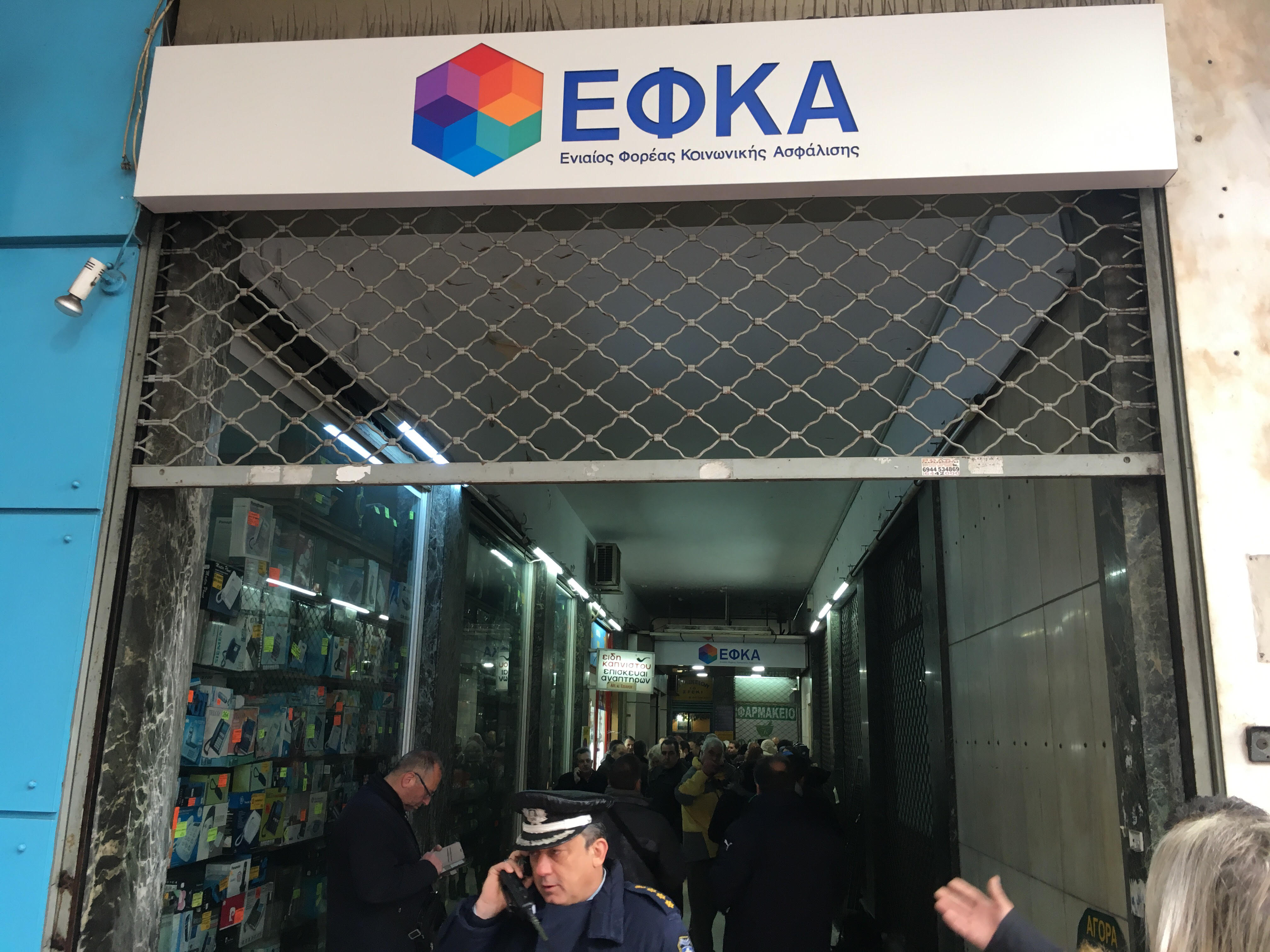 Η είσοδος του κτιρίου του ΕΦΚΑ στην Αγίου Κωνσταντίνου είναι αποκλεισμένη ενώ οι διαδηλωτές έχουν αναρτήσει πανό ζητώντας να δοθεί λύση άμεσα στο πρόβλημα.
