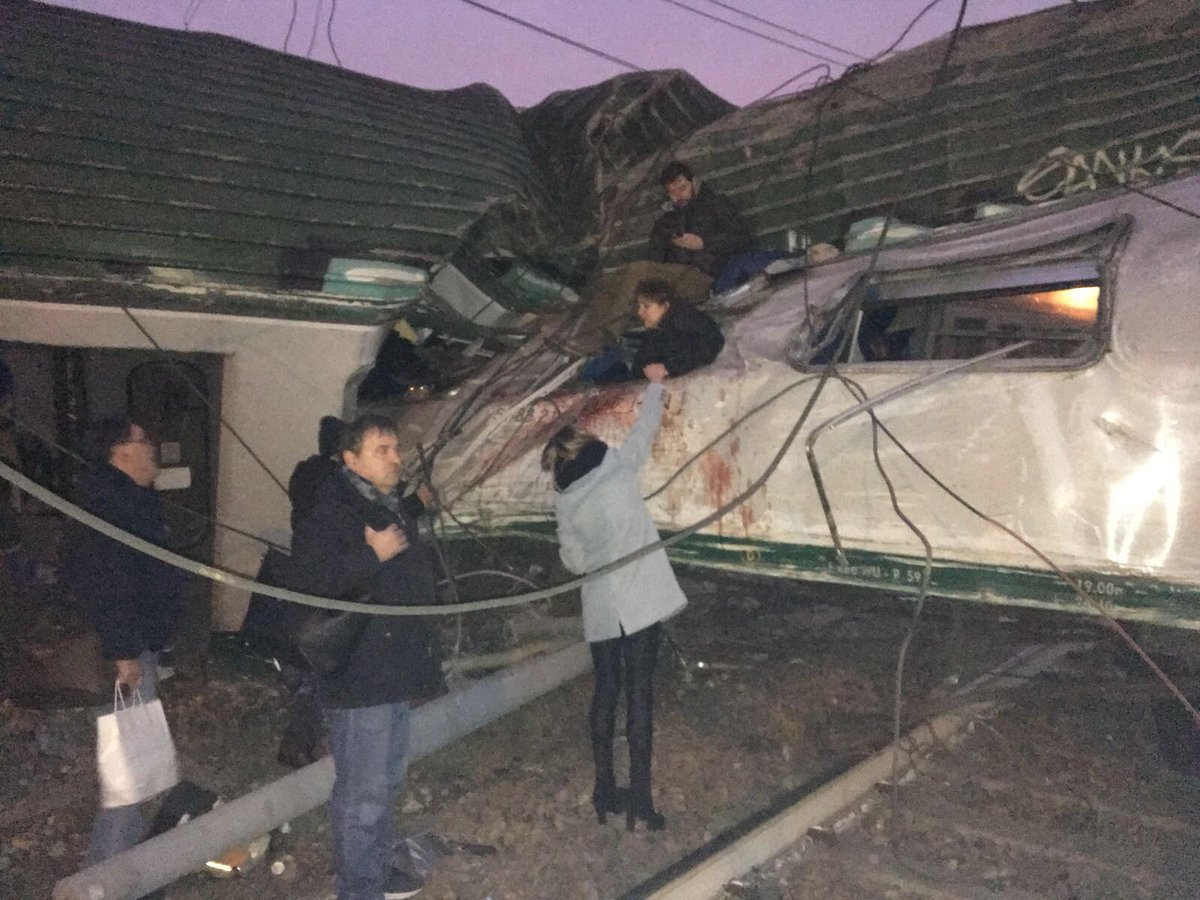Σε απόσταση δεκαπέντε χιλιομέτρων από το Μιλάνο, εκτροχιάστηκαν δυο κεντρικά βαγόνια του τραίνου και οι πυροσβέστες, μαζί με καραμπινιέρους και αστυνομικούς, συνεχίζουν να εργάζονται αδιάκοπα, για να απεγκλωβίσουν τους τελευταίους τραυματίες.