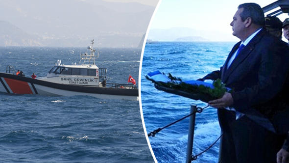 Ρίψη στεφάνου στον θαλάσσιο χώρο των Ιμίων πραγματοποίησε ο υπουργός Εθνικής Άμυνας Πάνος Καμμένος, τιμώντας τους πεσόντες Έλληνες αξιωματικούς του Πολεμικού Ναυτικού Παναγιώτη Βλαχάκο, Χριστόδουλο Καραθανάση και Έκτορα Γιαλοψό.