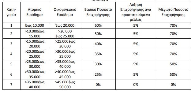 Αναλυτικά τα εισοδηματικά κριτήρια παρατίθενται στον πίνακα.
