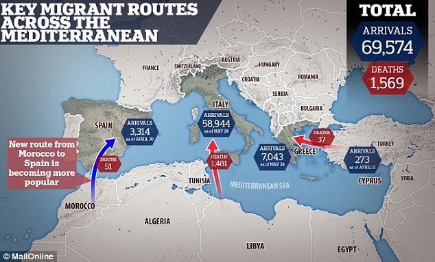 Σύμφωνα με τον πιο πρόσφατο απολογισμό του Διεθνούς Οργανισμού Μετανάστευσης (ΔΟΜ), η Ισπανία πλέον κατατάσσεται δεύτερη σε αριθμό αφίξεων δια θαλάσσης, με 1.279 από την αρχή της χρονιάς, πίσω από την Ιταλία (4.256) και τρίτη σημαντικότερη πύλη εισόδου στην Ευρώπη για τους μετανάστες μέσω της Μεσογείου, μετά την Ιταλία και την Ελλάδα.