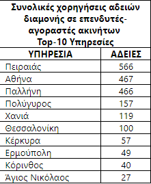 Έντονο είναι το ενδιαφέρον για επενδύσεις στον Πειραιά (1.515), στην Αθήνα (1.210) και στην Παλλήνη (1123).