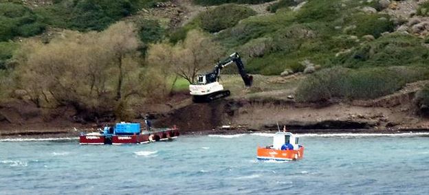 Όπως μεταδίδουν, η κατασκευή του φυλακίου – παρατηρητηρίου ξεκίνησε με πλωτή πλατφόρμα η οποία μετέφερε στο νησί τα πρώτα μηχανήματα, ενώ υπολογίζεται πως οι εργασίες θα ολοκληρωθούν σε τρεις εβδομάδες.