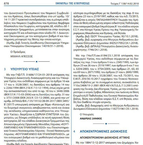 Σύμφωνα με τα όσα αναφέρει το χθεσινό Φύλλο Εφημερίδας της Κυβερνήσεως, ανακαλείται η απόφαση διορισμού ενός γιατρού που είχε τοποθετηθεί στο Γενικό Νοσοκομείο Καβάλας στη θέση Επιμελητή Β΄ της Παθολογικής Κλινικής από το Φεβρουάριο του 2001, και έκτοτε εργαζόταν ανελλιπώς στο νοσηλευτικό ίδρυμα της πόλης, λόγω έλλειψης πτυχίου ιατρικής.