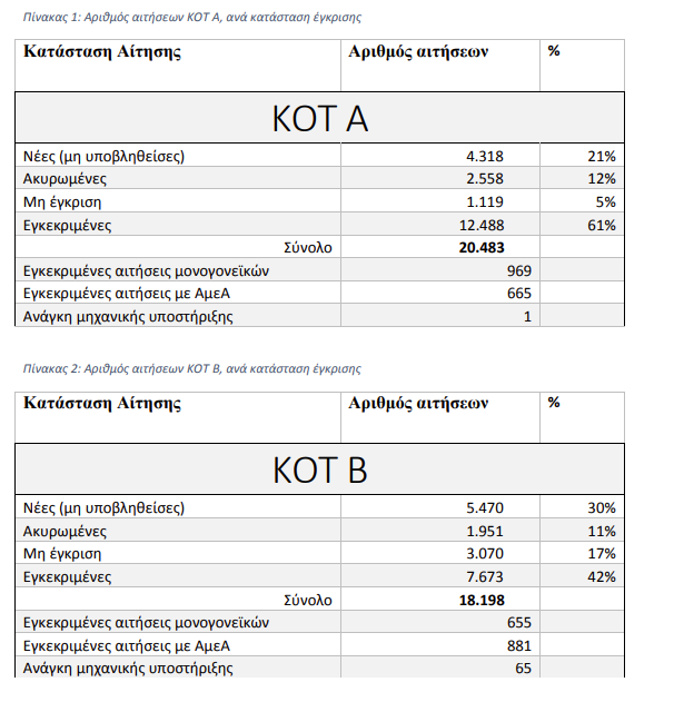 Για ΚΟΤ Α και ΚΟΤ Β έχουν υποβληθεί 40.000 περίπου αιτήσεις από τις οποίες οι μισές έχουν εγκριθεί.