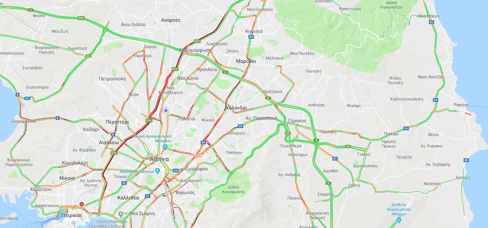Κίνηση παρατηρείται ακόμα στην Κηφισιάς, τη Μεσογείων, την Αλεξάνδρα και την Συγγρού.
