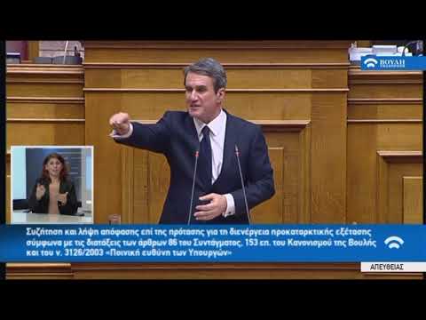 Αναφερόμενος στη δικογραφία που τον φέρνει κατηγορούμενο είπε πως: «όσο και αν έχω προσπαθήσει αυτόν τον καιρό κατέστη αδύνατον να αντιληφθώ της συνθήκες για τις οποίες καλούμαι να απολογηθώ», καταλήγοντας στο συμπέρασμα ότι ο λόγος που κλήθηκε σε απολογία είναι «η αντιπολιτευτική μου φωνή που κάνει ζημία» στην κυβέρνηση.