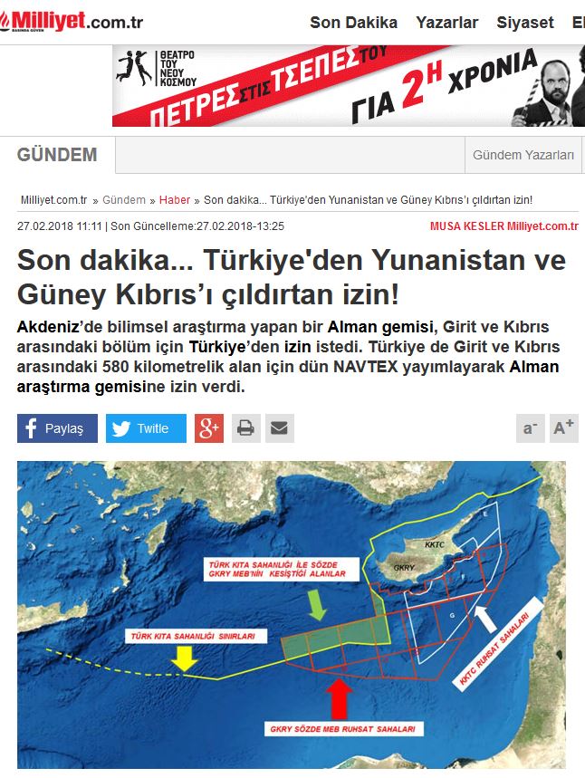 Milliyet: Άδεια που τρελαίνει Ελλάδα και Κύπρο ζήτησε γερμανικό σκάφος